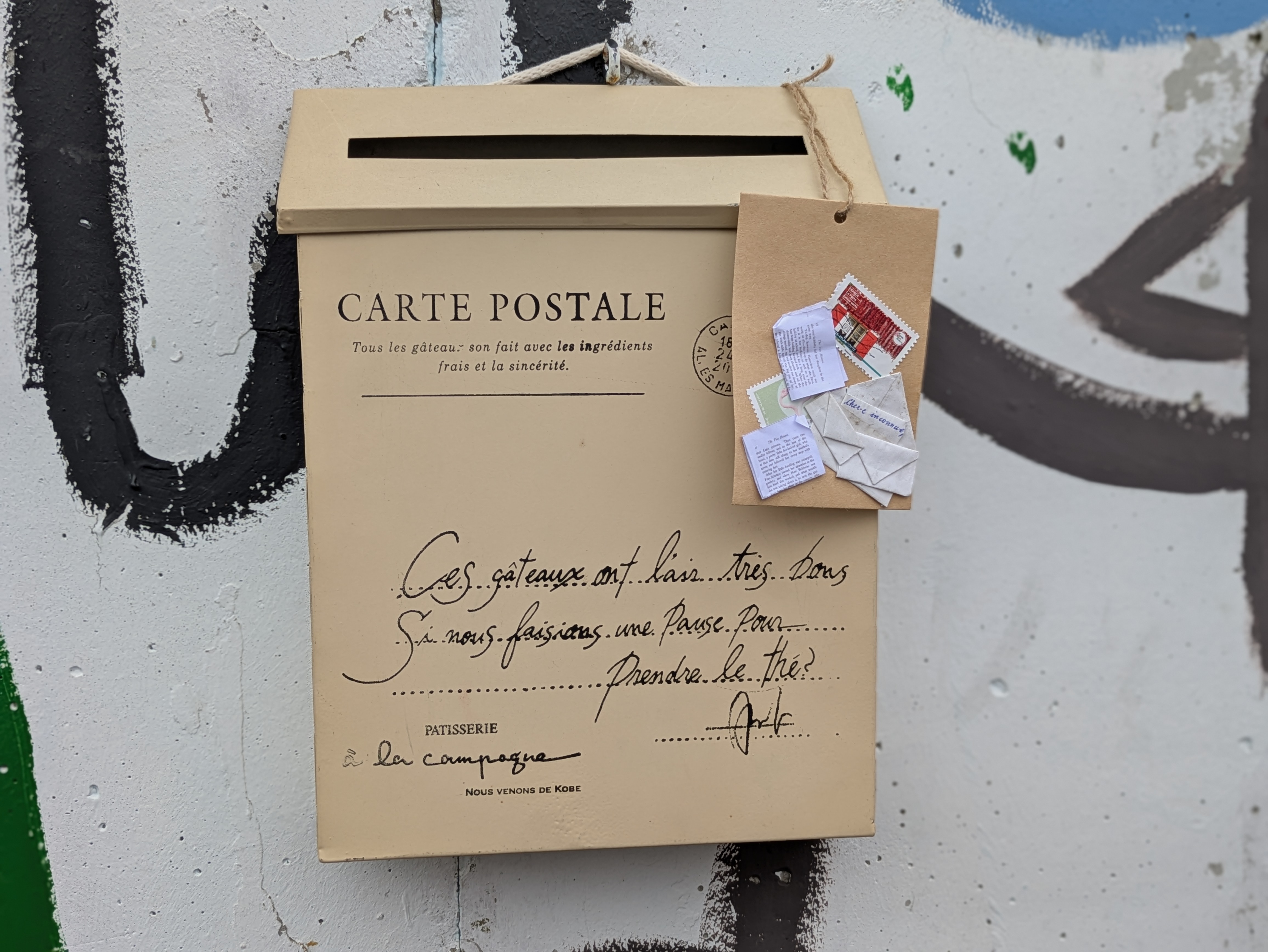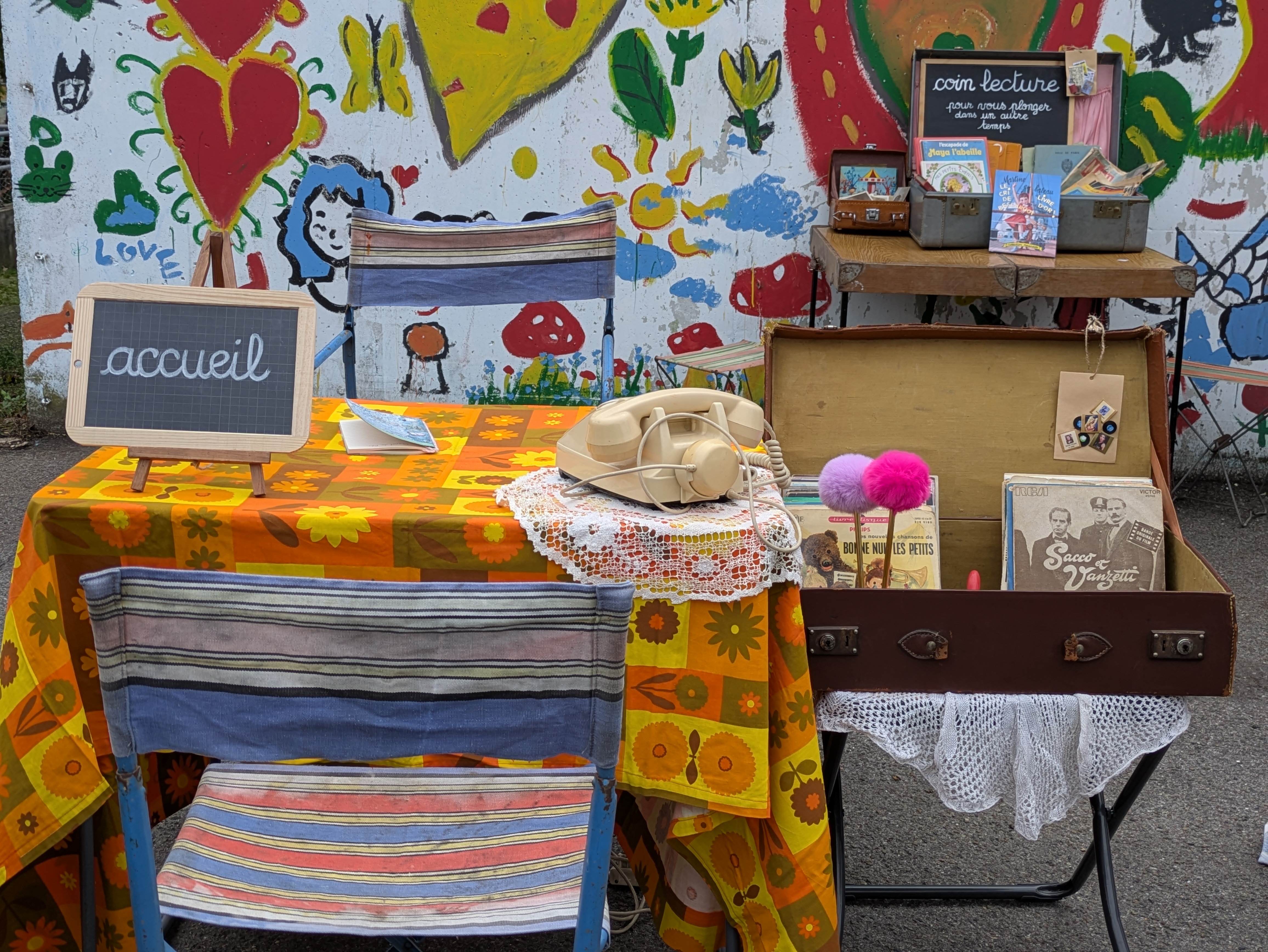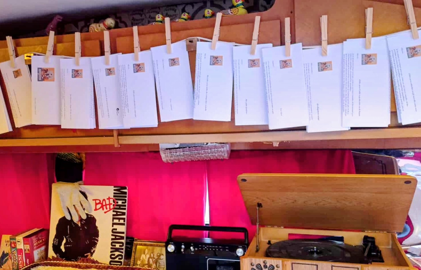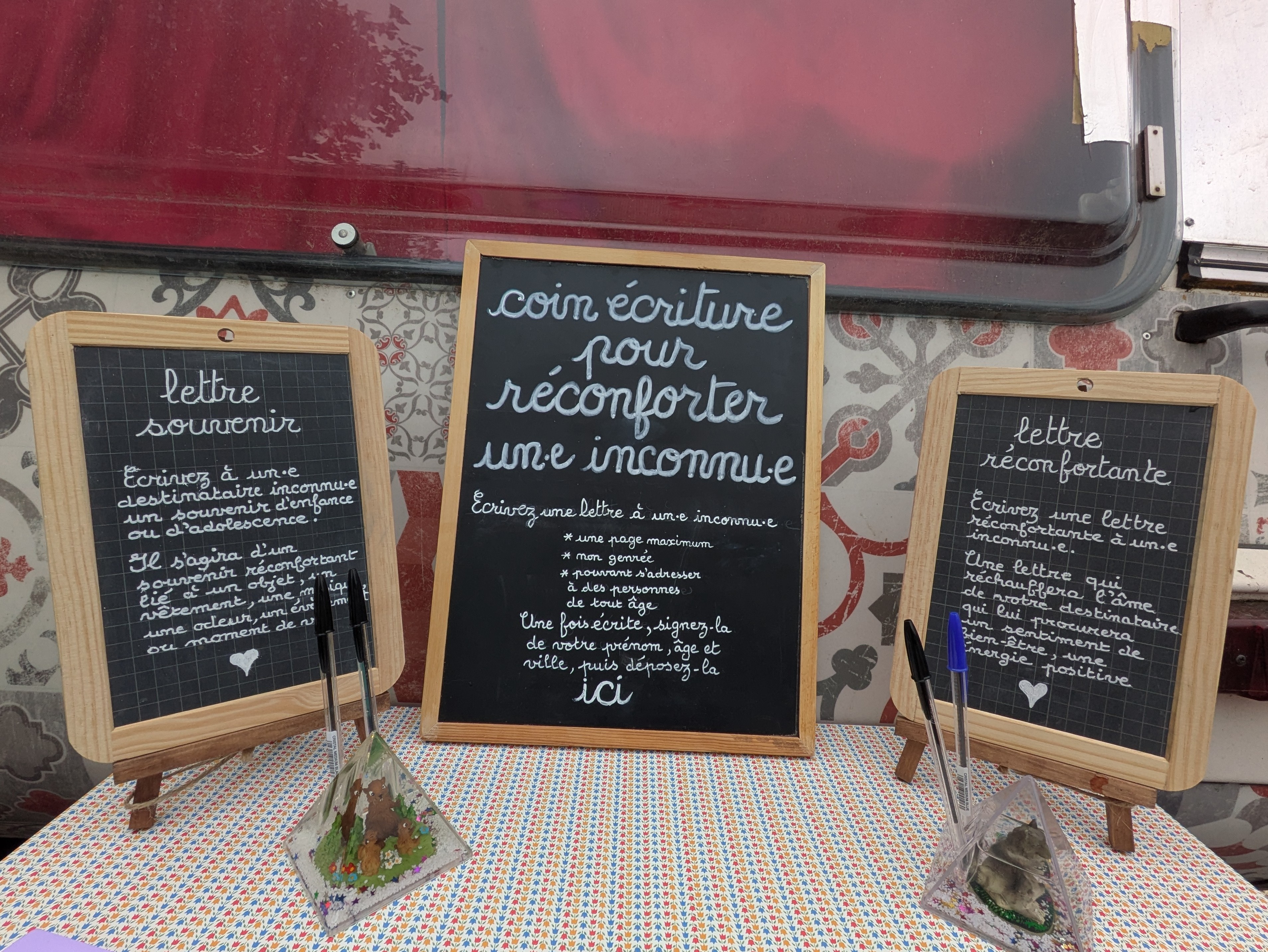 Madeleine, spécialiste en épaule réconfortante, vous invite à entrer dans son cabinet. Accompagné.e de la musique de votre choix, pénétrez dans un véritable cabinet de curiosités empli d’objets et de décorations des années 1950 à 2000. Choisissez un objet, une friandise, puis posez votre tête sur l’épaule de Madeleine. Votre objet en main, votre friandise en bouche, écoutez alors Madeleine vous lire une lettre de mots doux rien que pour vous! Une pause délicieusement régressive, où vous pourrez savourez un instant réconfortant et hors du temps!